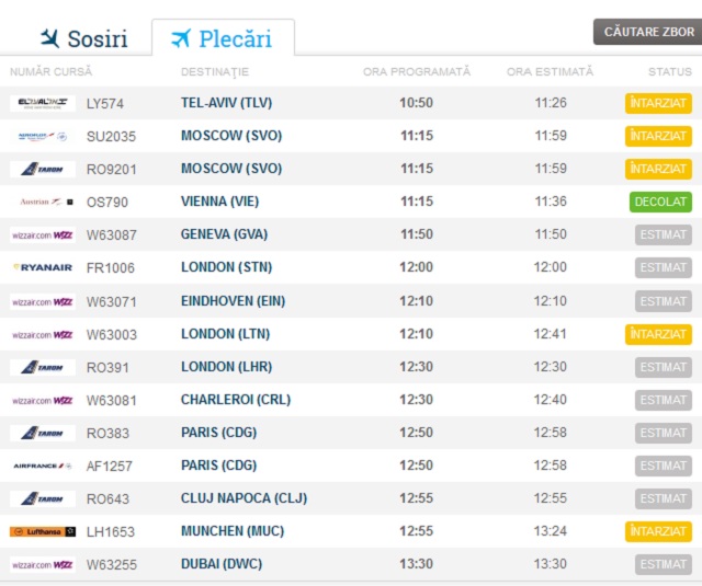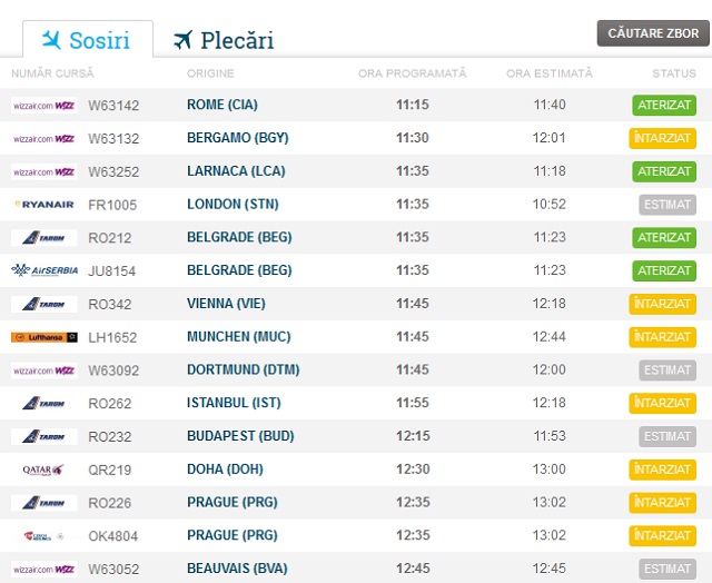 Situaţia la ora 11:40 pe Aeroportul "Henri Coandă":