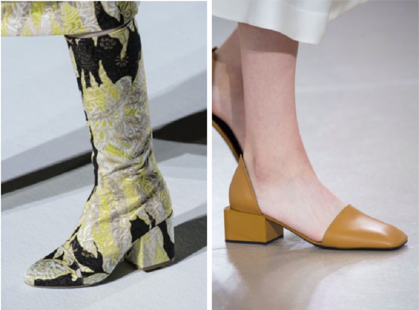 Conceptul de stabilitate si siguranta in mers se pastreaza, mai ales ca in sezonul rece de anul acesta se poarta la nebunie comoditatea si lejeritatea in materie de modele si texturi. Ultimele colectii de incaltaminte lanseaza in continuare modele care consacreaza tocul patrat, tip block, ca fiind o emblema a stilului. Botinele cu tocul patrat sunt acum vedete, iar inaltimile sunt mai degraba medii, joase si permisive, semn ca nu se mai permite compromisul atunci cand vine vorba de confort, nici macar in semn de sacrificiu pentru moda! Pantofii eleganti, accesorizati, cu imprimeuri, pattern-uri si catarame, din materiale diverse sau botinele din piele lacuita sunt cele mai apreciate de catre modele.