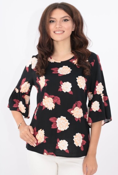 Imprimeurile florale sunt potrivite în orice anotimp, de aceea următorul articol vestimentar suntem siguri că va deveni rapid și preferată ta: Bluza lejeră neagră cu prinț floral. Se potrivește la orice tip de pantaloni și va da o pată de culoare și de elegantă oricărei ținute în care va fi integrată.