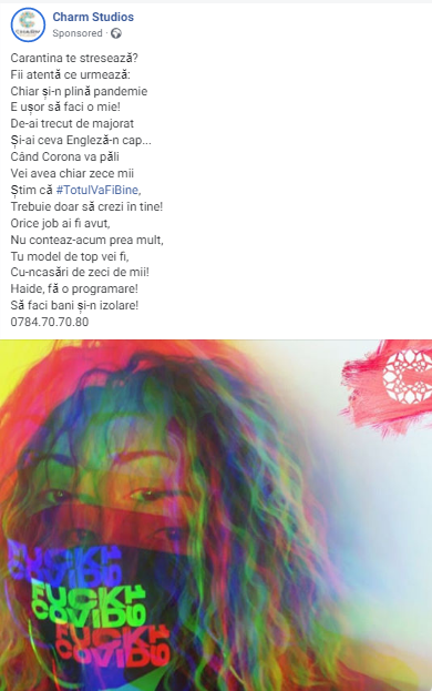 A găsit soluția într-o reclamă de pe Facebook, care avea o poezie interesantă și un mesaj care a convins-o să meargă la o discuție. Jobul era unul de model, într-un studio videochat cunoscut în București și, chiar dacă a fost speriată la început, și-a zis că merită încercat.