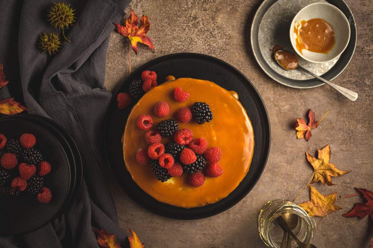 Rețetă de cheesecake cu caramel și zmeură. Un desert rapid și delicios