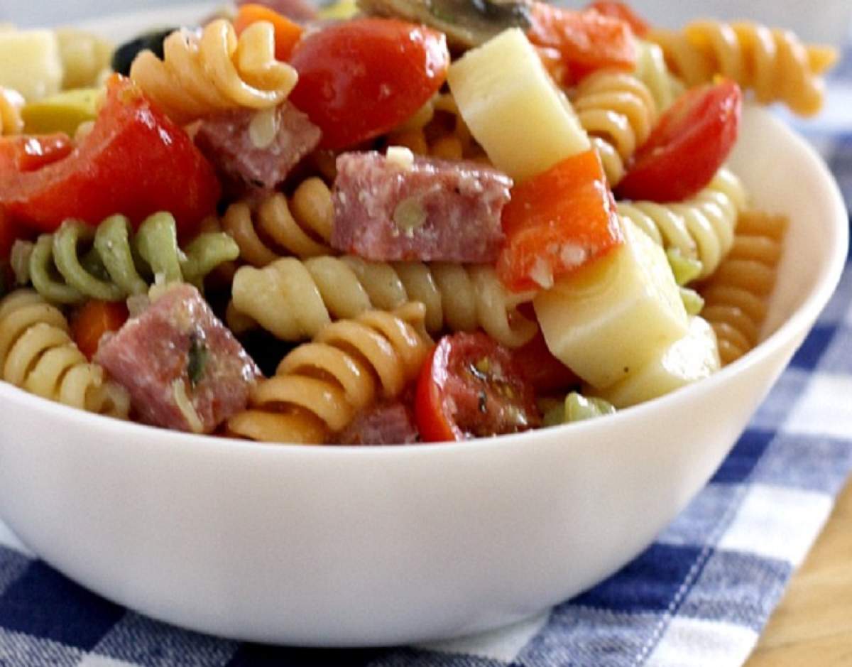 Pentru zilele de vară poţi prepara un fel de mâncare uşor de preparat. O salătă de paste cu legume, hrănitoare şi gustoasă.
