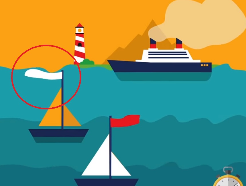 EXPLICAŢIE: De ce? Simplu! În cazul în care nu ai reuşit să îţi dai singur seama, aburul vaporului şi steagul celei de-a doua bărcuţe sunt purtate de vânt în patea drepată, în timp ce steagul alb este în partea total opusă, lucru imposibil din punct de vedere fizic pentru a fi adevărat.