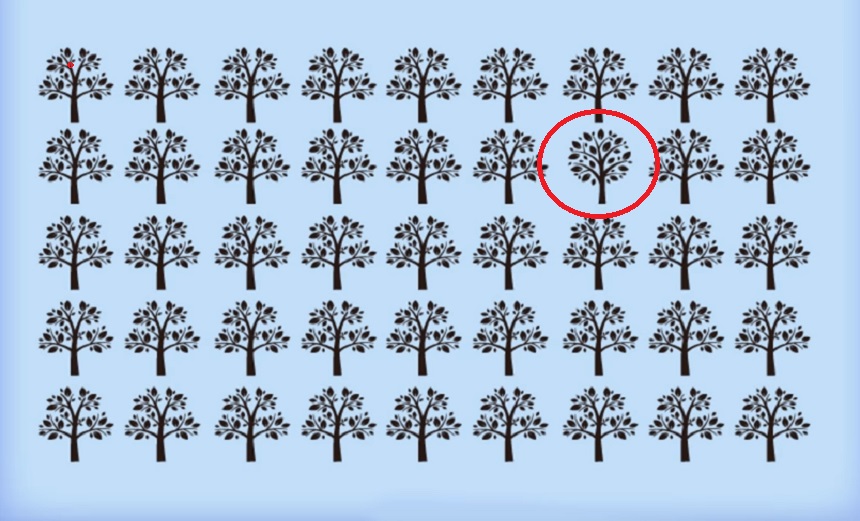 Îţi propunem un test simplu, dar care îţi va solicita atenţia şi concentrarea, iar tot ceea ce trebuie să faci este să găseşti foarte repede copacelul diferit de restul.