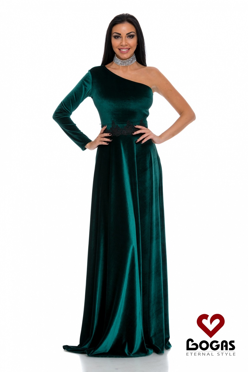 Daca ar fi sa facem un top al materialelor care se poarta de Revelion si nu numai, catifeaua ar ocupa o pozitie fruntasa langa paiete datorita nobletei sale de-a dreptul impresionante. Cu siguranta multe rochii de seara din catifea ti-au atras privirea, insa poate nu ai gasit-o pe cea castigatoare. Ei bine, din colectia de rochii de seara de la Bogas face parte un model unic, care iti va asigura o aparitie distinsa. Nu este o rochie scurta, ca majoritatea modelelor, ci o rochie care iti imbraca trupul in intregime in catifea nobila. Accesorizeaz-o cu un colier batut in pietre stralucitoare, pantofi cu toc inalt si un clutch in nuante metalice.