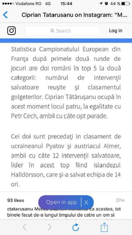Pe contul său de Instagram, “Tătă” se mândreşte cu realizările pe care le-a avut în Franţa. Ce-i drept, goalkeeper-ul a lăsat o impresie bună, după jocurile cu “cocoşii” şi cu “ceasornicarii”.