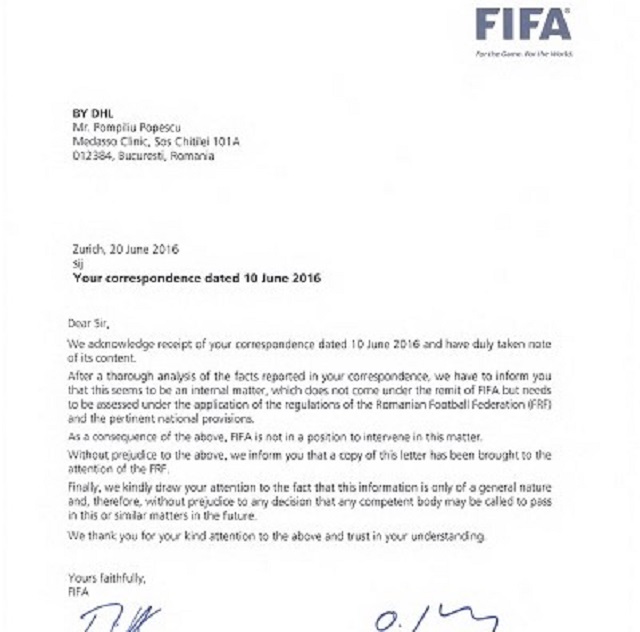 FIFA se implică în conflictul dintre Pompiliu Popescu şi Federaţia Română de Fotbal! Răspunsul primit de medic din partea forului internaţional