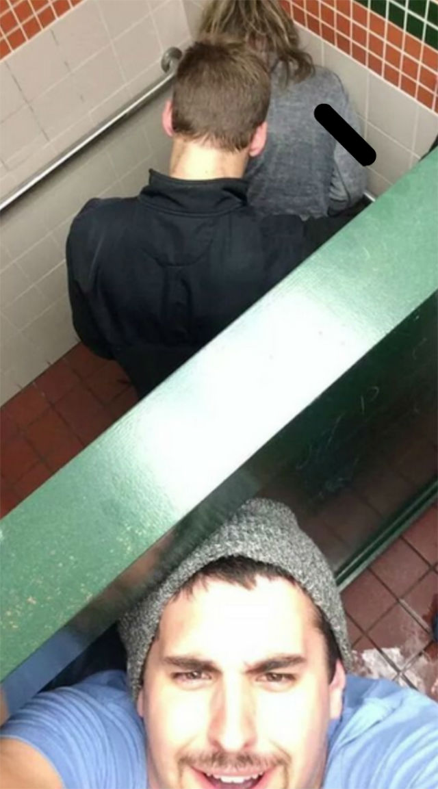 Ca să le imite cât mai bine pe "piţipoancele" care-şi fac poze în baie, tipul ăsta a ridicat telefonul deasupra capului şi s-a pozat de sus, fără să observe, însă, că în cabina alăturată se afla un cuplu care păreau că vor să facă sex. Tipul a pus imaginea pe conutul lui de socializare şi a primit o mulţime de like-uri. E amuzant sau nu?