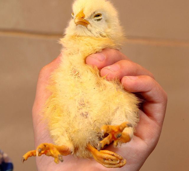 Puiul are trei picioare şi, deşi nimeni nu credea, a supravieţuit şi pare un puişor normal. Asta dacă nu-i priveşti...picioarele!
