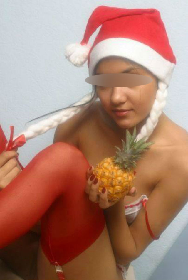 În jartiere şi ciorapi roşii, cu bretelele de la sutien lăsate-n jos, tipa din imagine a vrut să fie cea mai sexy Crăciuniţă. A pus poza pe contul ei de socializare, dar efectul nu a fost cel aşteptat. Toţi prietenii au râs de ea când au vazut ce ţine-n mână: un ananas care i-a stricat de tot imaginea porno.