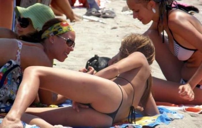 Într-un costum de baie minuscul, tipa din imagine a început să se atingă, în faţa prietenelor ei şi a celorlaltor persoane de pe plajă. Nu ştim dacă i-a întrat chilotul undeva şi voia să îl scoată, sau pur şi simplu simţea nevoia de a de "autoexplora", cert este că a reuşit să atragă privirile ca un magnet.