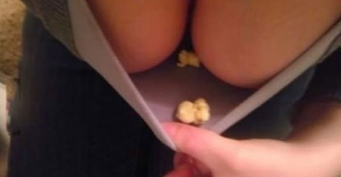 Şi-a scăpat în decolteu popcorn, după care şi-a pozat "isprava". Imaginea a devenit virală cu rapiditate datorită bustului proeminent. Bărbaţii au luat-o razna când au văzut fotografia incitantă. În mintea lor, "floricelele" au devenit inexistente.
