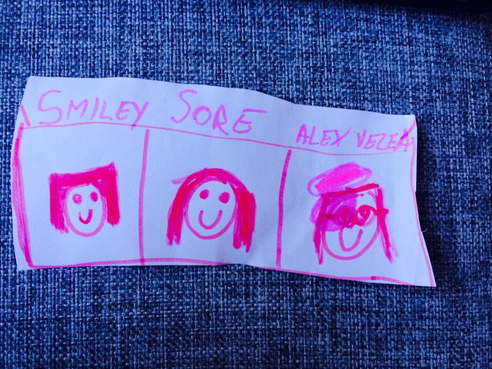 Nepoata lui Sore le-a făcut portretele celor trei - Smiley, Sore şi Alex Velea - cum a ştiut ea mai bine. Smiley are, în desen, o faţă rotundă şi un păr foarte lung, în timp ce Velea are şi păr lung, şi ochelari, şi şapcă, fiind cel mai "funky" dintre ei. "Nepoata mea, Alessia, a facut un afis original", a explicat Sore, pe contul de socializare.