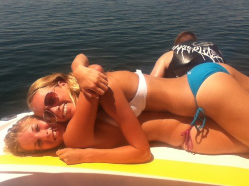 Îmbrăcate dor cu costumele de baie, cele două prietene s-au trântit una peste alta şi s-au luat în braţe, lăsând să li se fadă formele tonifiate. Bărbatul care a mers cu ele nici nu le-a băgat în seamă. A stat tot drumul cu spatele la ele şi privea în depărtare. Toţi prietenii lui au râs de el când au văzut poza.