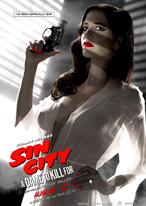 În poster, actriţa Eva Green apare îmbrăcată cu o cămaşă albă, semitransparentă şi foarte decoltată, prin care i se pot distinge sânii şi sfârcurile. Cu ochii exagerat de verzi, cu unghiile şi rujul de un roşu-intens, Eva ţine un pistol în mână şi priveşte pătrunzător în timp ce ţine în mână un pistol.
