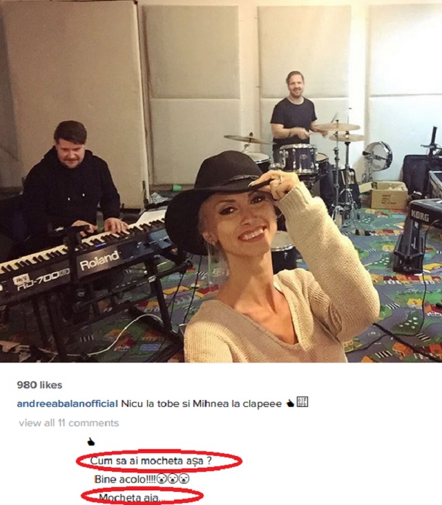 "Cum să ai mocheta aşa?" / "Mocheta aia", i-au scris prietenii virtuali Andreei Bălan.