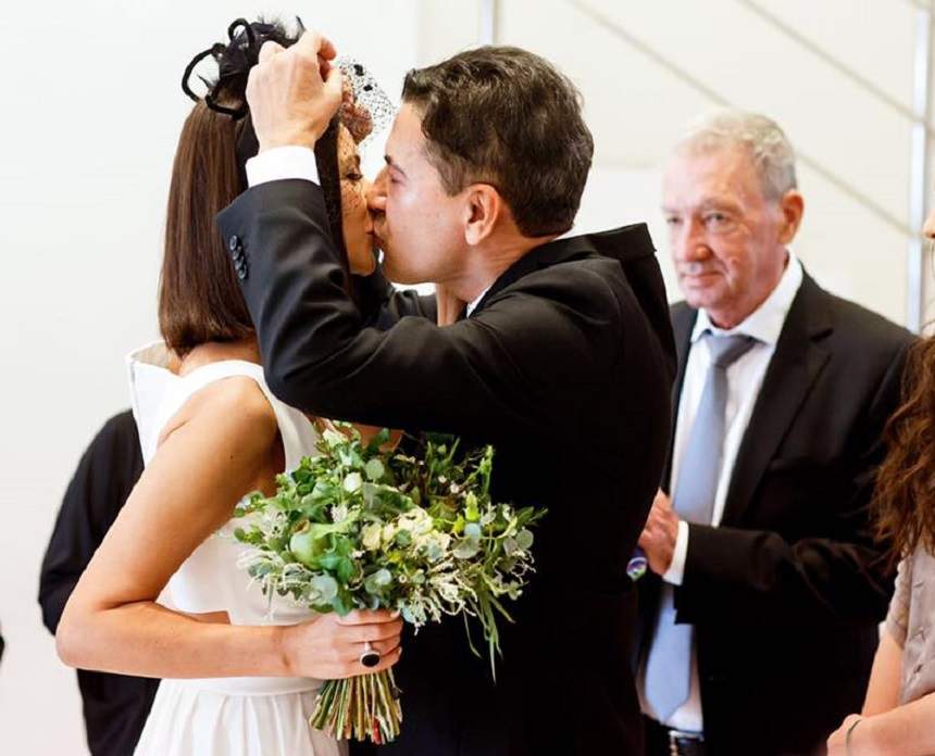 Andreea Berecleanu, soţul său şi tatăl ei pe fundal