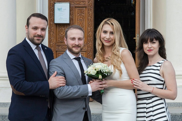 Băiatul regretatului jurnalist Dumitru Tinu şi-a pus pirostriile! Andrei şi-a luat inima în dinţi şi şi-a dus iubita în faţa altarului, fiind "ajutat" de naşii lui, nimeni altul decât omul de afaceri Andrei Ţîrdea şi mama acestuia.