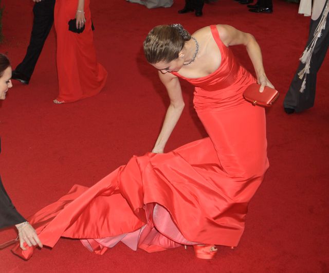 Nu crezi?! De câte ori nu ai văzut imagini de la evenimente cu ştaif în care vedetele fie se împiedicau, fie renunţau la maniere? Ei bine, noi îţi arătăm câteva fotografii de pe covorul roşu în care unele dintre cele mai frumoase actriţe sau cântăreţe au avut de furcă din cauza rochiilor prea sofisticate.
