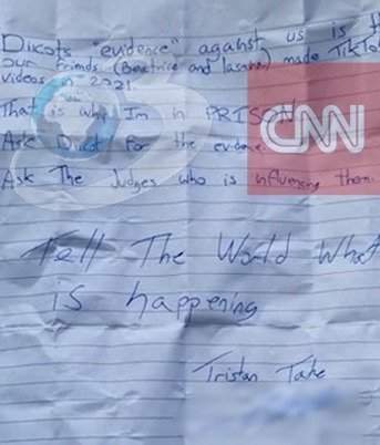 Ce conținea biletul secret pe care Tristan Tate i l-a dat unei reporterițe. Mesajul scris de milionar: „De aceea suntem în închisoare” / FOTO