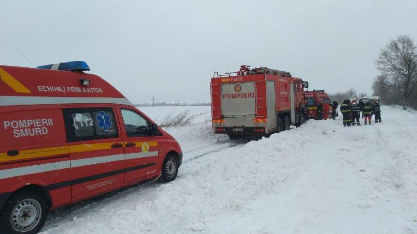UPDATE: Drumuri blocate, maşini rămase în zăpadă şi oameni care au nevoie de ajutor. O femeie gravidă, salvată de echipajele ISU Argeş