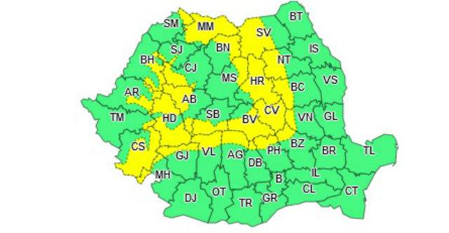 COD GALBEN de PLOI şi VÂNT PUTERNIC! Vezi ce zone ale ţării sunt vizate de atenţionarea meteorologilor