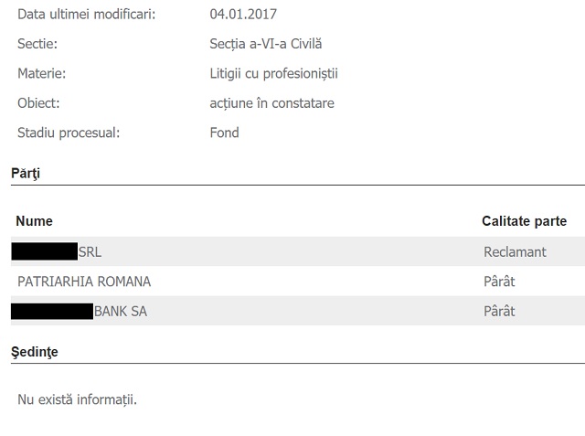 Compania care construieşte lăcaşul sfânt menit să vindece sufletele păcătoşilor de pe plaiuri mioritice a dat în judecată, recent, Patriarhia Română, acuzând-o că a "uitat" să-şi achite datoriile. Conform portalului instanţelor de judecată, alături de Patriarhie a fost chemată la bară şi o instituţie bancară. Dosarul a fost deschis în urmă cu doar câteva zile, iar primul termen al procesului nu a fost încă stabilit.