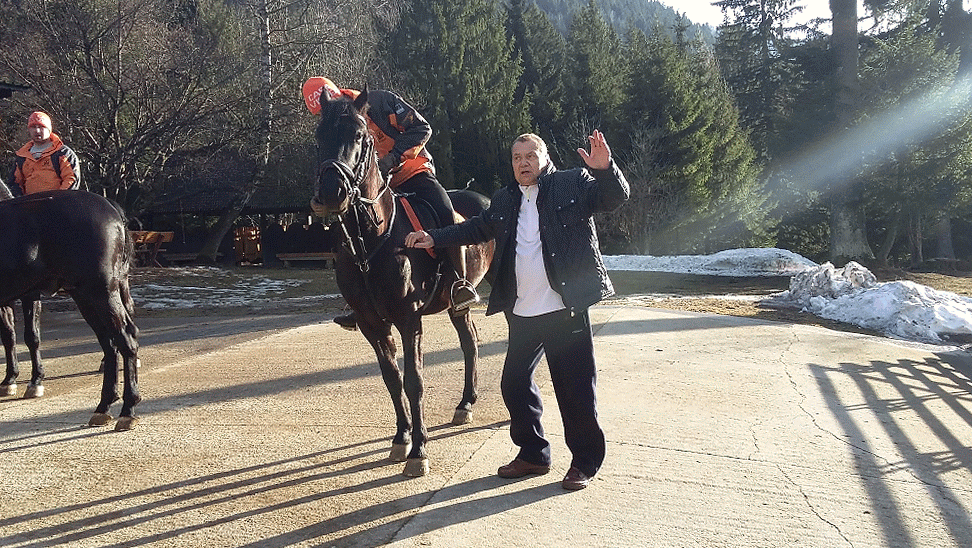 Cu zâmbetul pe buze, Cornel Patrichi a fost surprins în timp ce se afla lângă un călăreț.