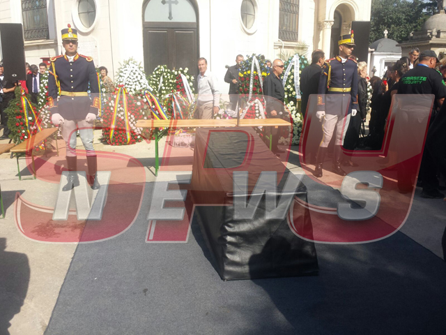 Odată ajuns la cimitir, sicriul cu trupul neînsufleţit al parlamentarului a fost cărat pe braţe de către militari, şi depus în faţa capelei, unde va avea loc slujbă de înmormântare.