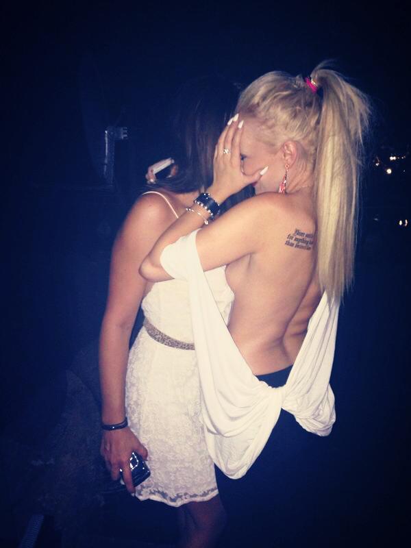 Aflată într-un local din parcul Herăstrău, Denisa Botcari a experimentat câteva momente tandre în braţele prietenei sale bune, fapt ce a lăsat la vedere mare parte din decolteul blondei.