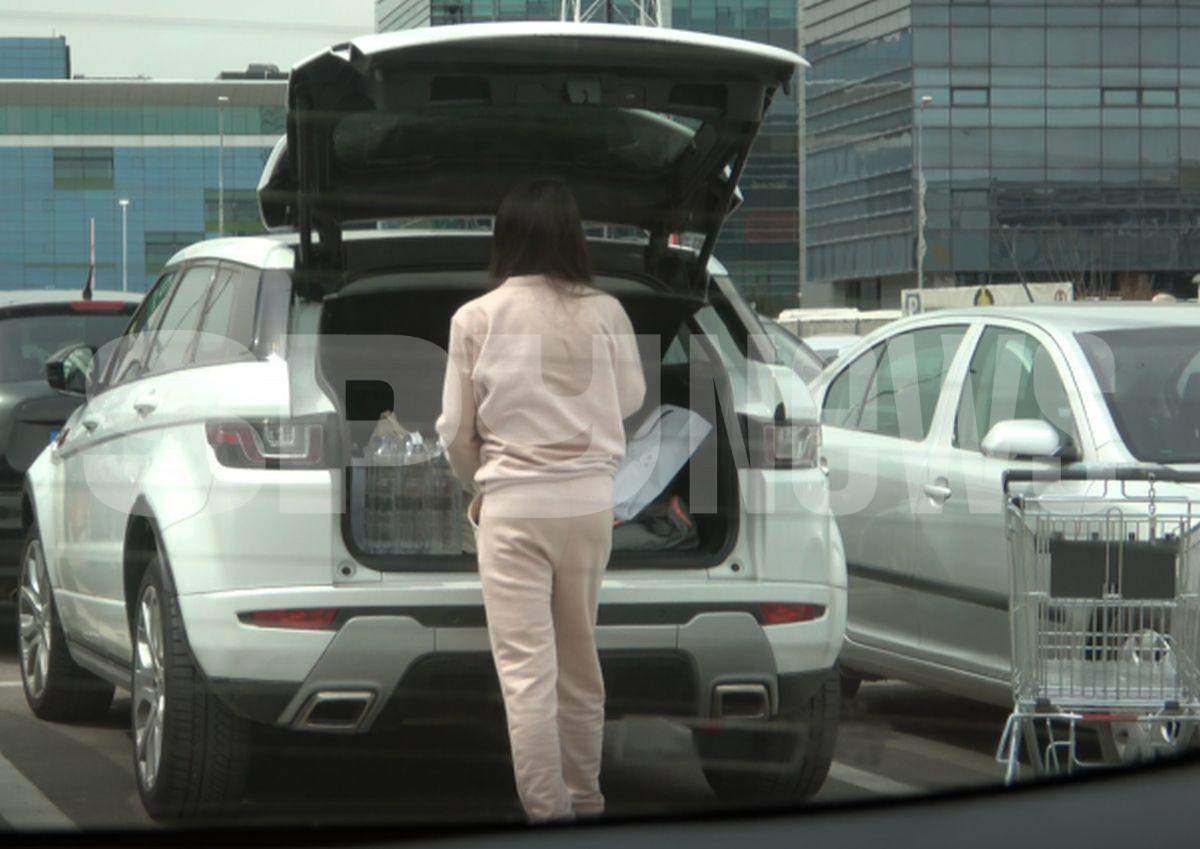 Anna Roman, în timp ce își așează cumpărăturile în mașină