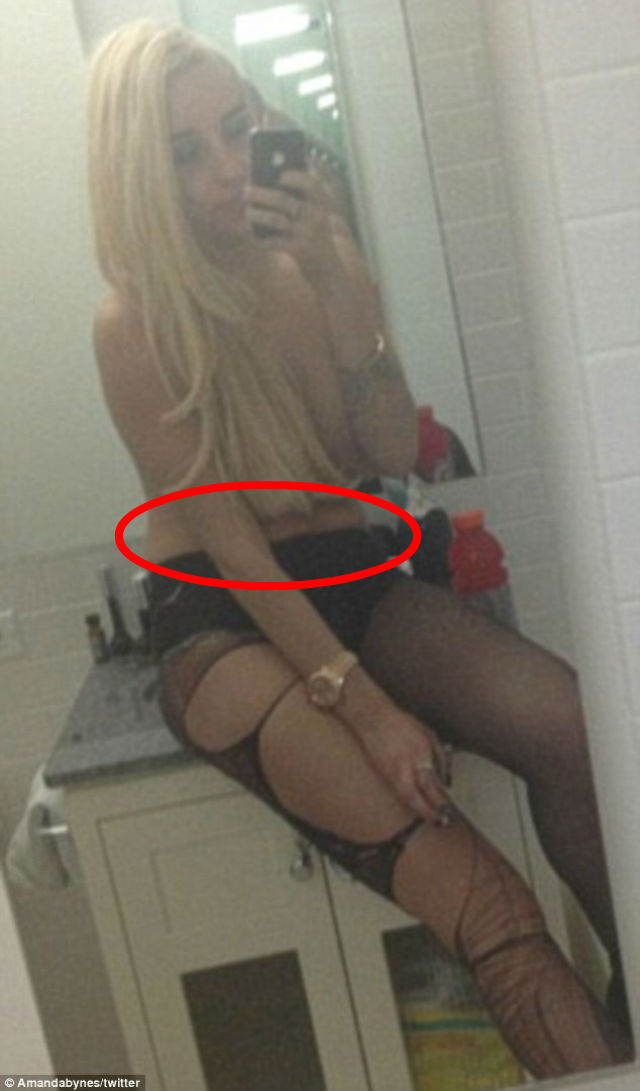 Amanda Bynes a rămas în sânii goi, acoperită doar de o pereche de dresuri rupte. S-a urcat cu fundul pe chiuveta din baie şi şi-a făcut o poză în oglindă, ca să-i bage în boală pe toţi admiratorii, dar a cam dat-o-n bară. I se văd "şunculiţele" care i se revarsă peste chiloţi, semn că blonda nu e prea atentă la înfăţişarea sa. Cu toate astea, sânii ei imenşi au fost apreciaţi de toţi bărbaţii.