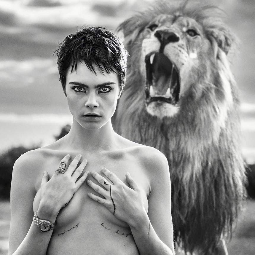 Cara Delevingne, pictorial sexy cu leii, în sălbăticie