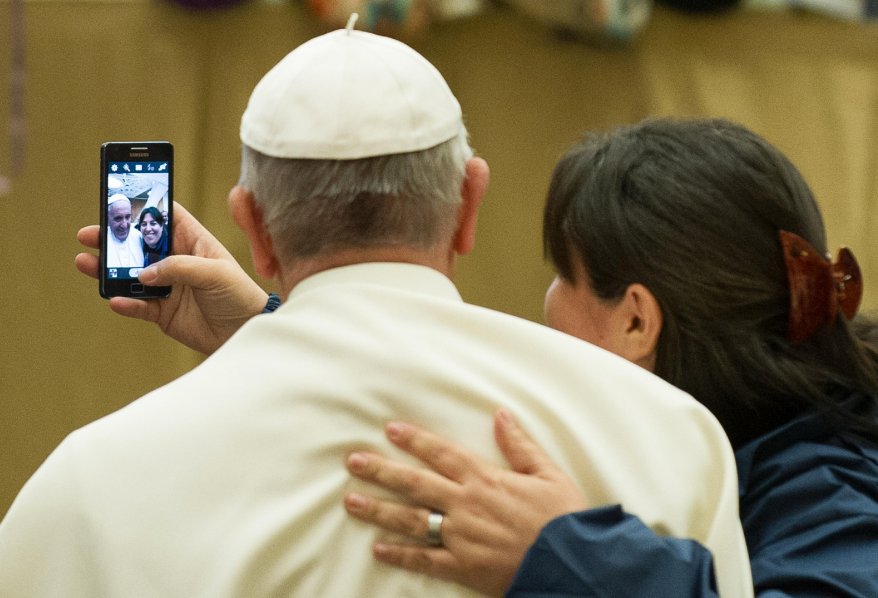 Papa Francisc se afla la o întâlnire cu credincioşii Diecezei de Isenia. După întrunire, o enoriaşă l-a rugat să facă un selfie, iar Suveranul Pontif s-a lăsat imediat înduplecat.