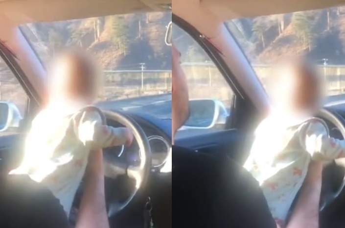 Imagini revoltătoare surprinse pe Valea Oltului! Un tată din Vâlcea și-a pus bebelușul de câteva luni la volan / FOTO