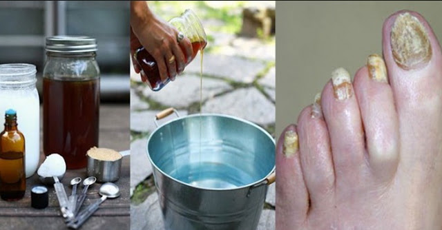 Toarnă oțetul de mere într-un lighean mic și înmoaie-ți picioarele timp de 20 de minute, după care usucă-te cu un prosop. Umple din nou ligheanul, de data aceasta doar cu apă, și ține picioarele înmuiate pentru încă 20 de minute, după care adaugă la apă și bicarbonatul de sodiu, și mai ține picioarele în lighean încă 20 de minute.