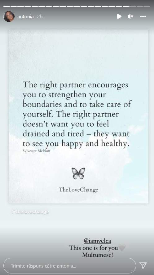 Mesajul Antoniei pentru Alex Velea, după ce s-a spus că sunt la un pas de despărțire: „Persoana potrivită vrea să te vadă fericită”