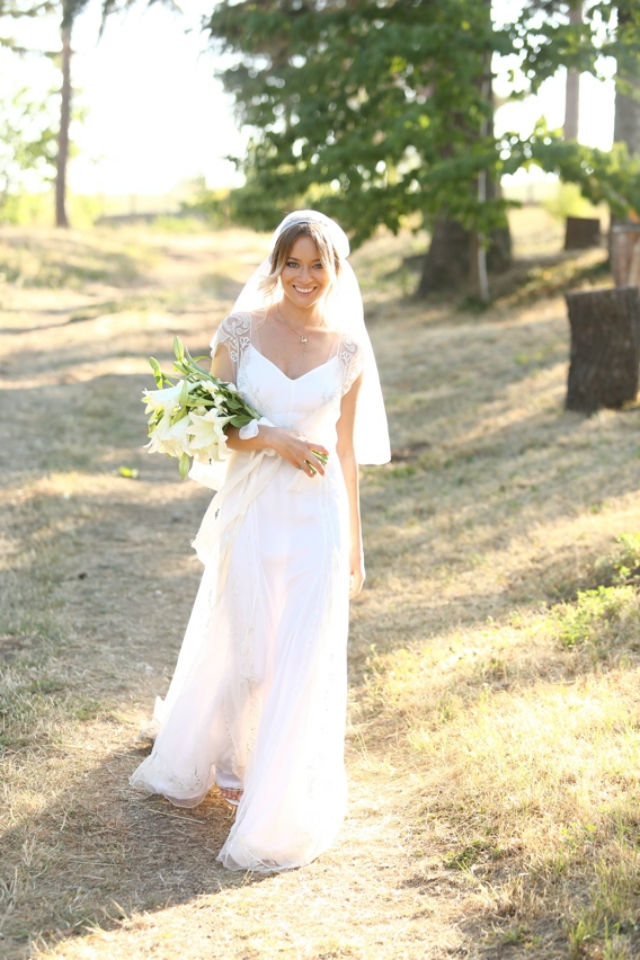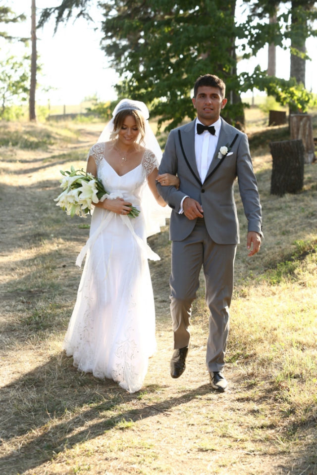 Frumoasa actriţă a ales o rochie lungă, simplă potrivită pentru petrecerea ce a avut loc în aer liber, însă un detaliu a atras atenţia tuturor invitaţilor. Rochia de mireasă pe care a purtat-o Laura Cosoi era...uşor transparentă.