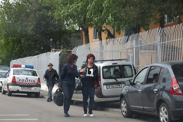Cu toate că au îngropat securea războiului în privinţa divorţului, Adriana Bahmuţeanu şi afaceristul nu au ajuns la un consens în ceea ce priveşte procesul în care vedeta tv susţine că firma tatălui copiilor ei nu i-a plătit salariul, mai mult, reprezentanţii societăţii au prezentat instanţei un act în care era modificat salariul, iar semnătura Adrianei este falsă. De fapt, pentru asta au ajuns ieri în faţa poliţiştilor de la Secţia 23. Chiar dacă locuiesc sub acelaşi acoperiş, Bahmu şi soţul ei au ajuns separat, la diferenţă de aproape 30 de minute. Îmbrăcat cu o geacă din piele neagră şi trăgând cu sete dintr-o ţigară, afaceristul şi-a făcut primul apariţia, semn că nu se teme să stea de vorbă cu oamenii legii. De altfel, se pare că este de-al casei la Secţia 23, din moment ce a fost aşteptat de un poliţist în curtea secţiei unde au şi zăvovit la o mică bârfă, preţ de 30 de minute.