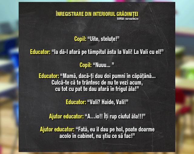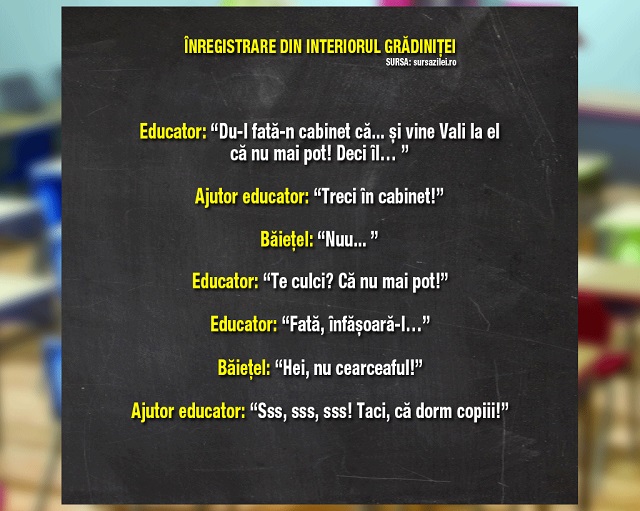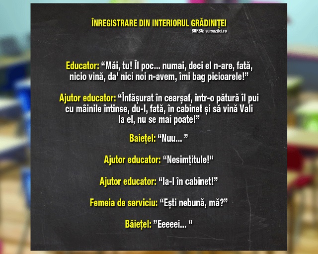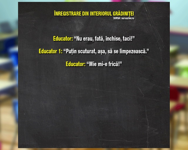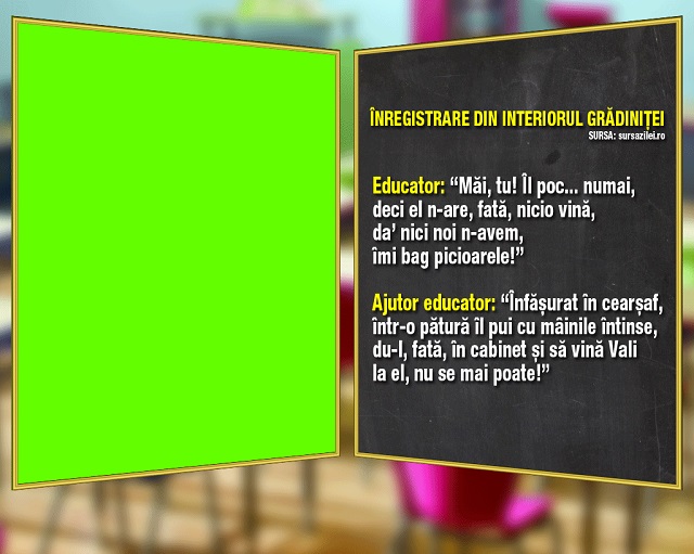 Părinţii plătesc bani grei pentru buna creştere a celor mici, însă nimeni nu bănuieşte ce se întâmplă în spatele uşilor ferecate ale grădiniţelor. Copiii dintr-o grădiniţa particulară din Constanţa au trăit luni de coşmar, iar părinţii care au intrat în posesia imaginilor înregistrate de pe camerele de înregistrare au avut un şoc.