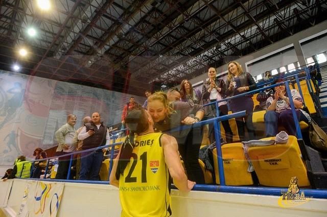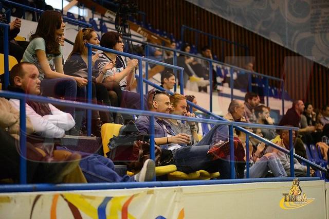 Aşezată discret lângă iubitul ei şi managerul echipei de baschet, Roxana Ionescu le-a făcut de-a lungul meciului galerie baschetbaliştilor timişoreni, ea devenind, de câteva săptămâni, una dintre fanele înfocate ale echipei Timba.