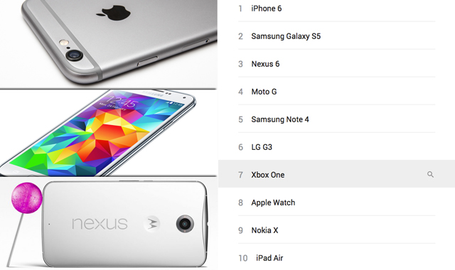 La capitolul electronice și device-uri, pe primul loc în căutări s-a situat iPhone 6, urmat de Samsung Galaxy S 5 și de Nexus 6.