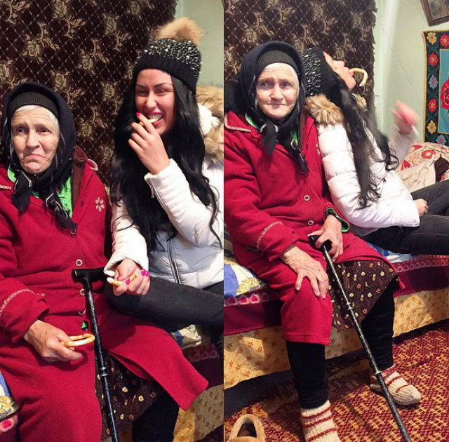 Asistenta "păcătoasă" a mers la bunica ei, alături de care a şi pus la cale o şedinţă foto. Ea le-a făcut cunoştinţă şi fanilor cu bătrâna, postând imediat imaginile pe un site de socializare. "Să îţi trăiască şi să te bucuri de ea", au fost doar câteva dintre mesajele primte de Cruduţa de la admiratori.