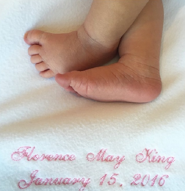 Micuţa Florence May King s-a născut pe 15 ianuarie şi este primul copil al actriţei şi al soţului ei, rockerul Joe King. „Sunt din nou îndrăgostită”, a scris Candice pe contul de Instagram, unde a adăugat şi o imagine cu picioarele micuţei. Cei doi au anunţat sarcina în luna august.