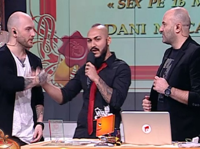 "Pentru la anul am ţinte: vreau să mă culc cu toate femeile căsătorite din România. Uite, o vreau pe Ana. Daniela nu e genul meu, dar o iau şi pe ea", a declarat Dani Mocanu, atentând la frumoasele asistente "păcătoase".