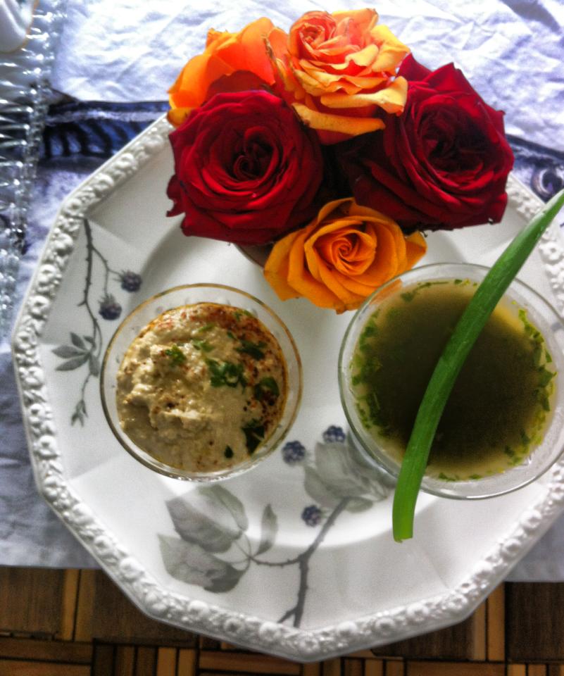 Ea s-a delectat cu humus şi supă de broccoli şi, pentru a adăuga consistenţă, fashion editorul a adăugat şi un buchet de flori, identic cu cele pe care obişnuia să le poarte în păr.