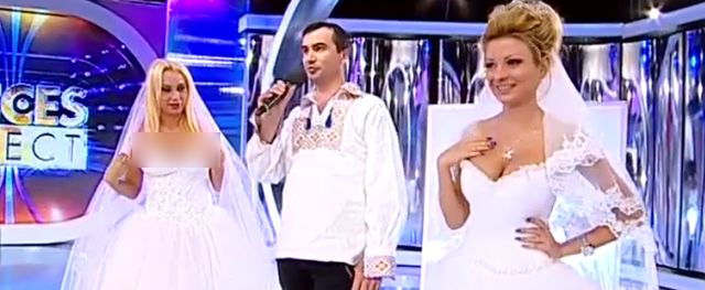 Simona Traşcă a oferit imaginea zilei, astăzi, în emisiunea "Acces direct". Dotata blondă a defilat în rochie de mireasă şi, surpriză!, a rămas cu sânii dezgoliţi.