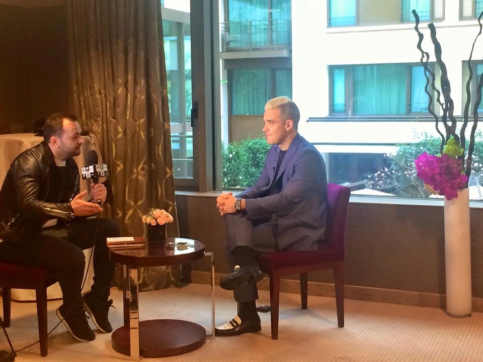 A reuşit! Primele imagini cu Mihai Morar şi Robbie Williams de la interviu
