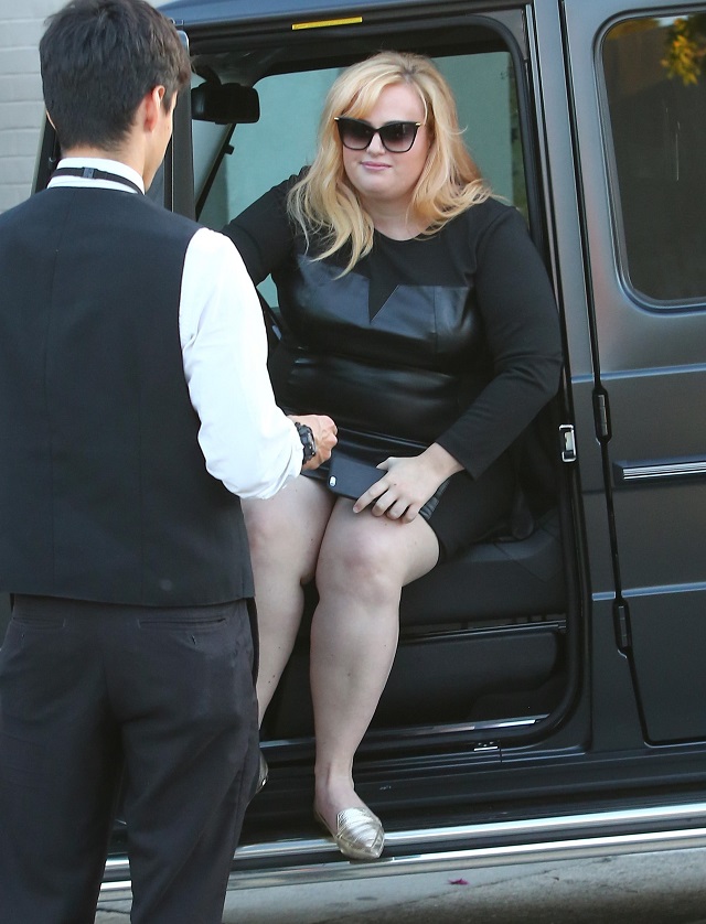 De curând, aceasta a fost surprinsă de paparazzii în timp ce ieşea la restaurant. Îmbrăcată într-o rochie neagră, mult prea mulată pentru "silueta" ei, Rebel Wilson a arătat mai mult decât şi-ar fi dorit să vadă oricine.