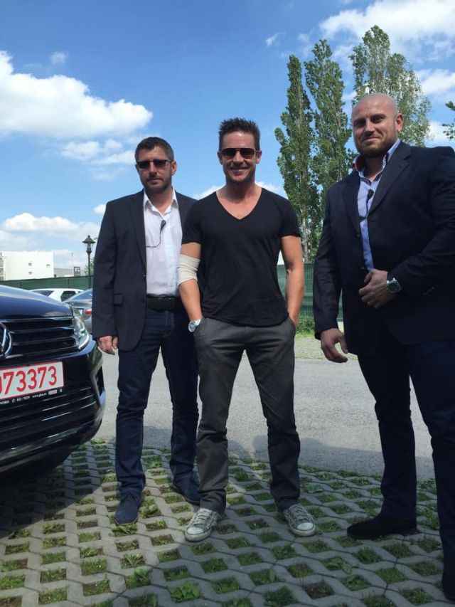Felix Baumgartner a publicat şi o fotografie în care este flancat de două gărzi de corp.